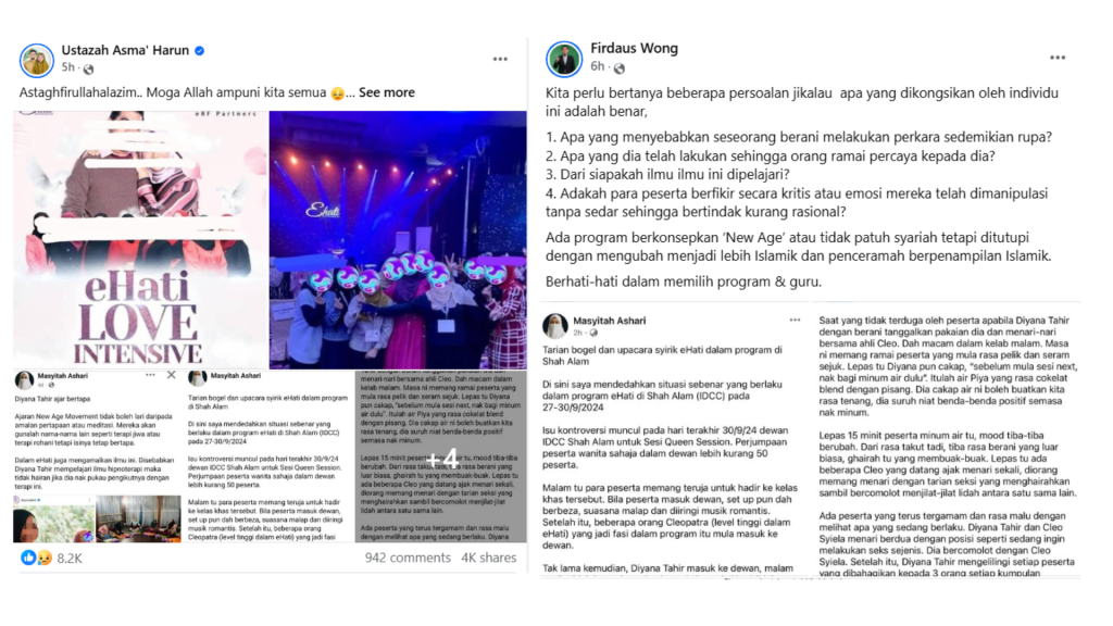 Baru-baru ini, media sosial digemparkan dengan pendedahan sebuah program “self-healing” atau pemulihan diri yang didakwa menggunakan pendekatan melampau dan tidak bermoral. Program yang diasaskan oleh sepasang suami isteri ini dilapor menyelitkan aktiviti seperti tarian bogel, ritual kelahiran semula (rebirth) dan teknik merangsang diri secara seksual, kononnya untuk melepaskan tekanan emosi dan trauma dalaman.